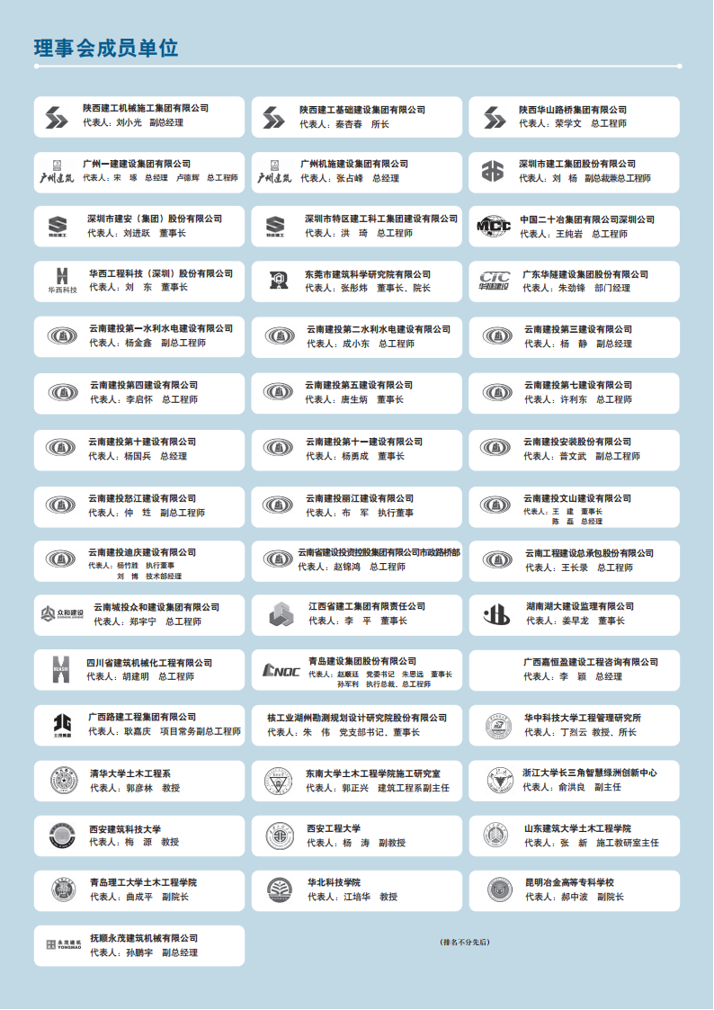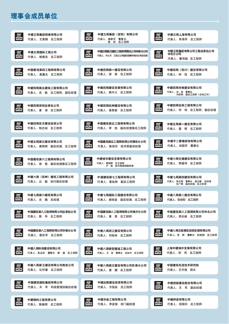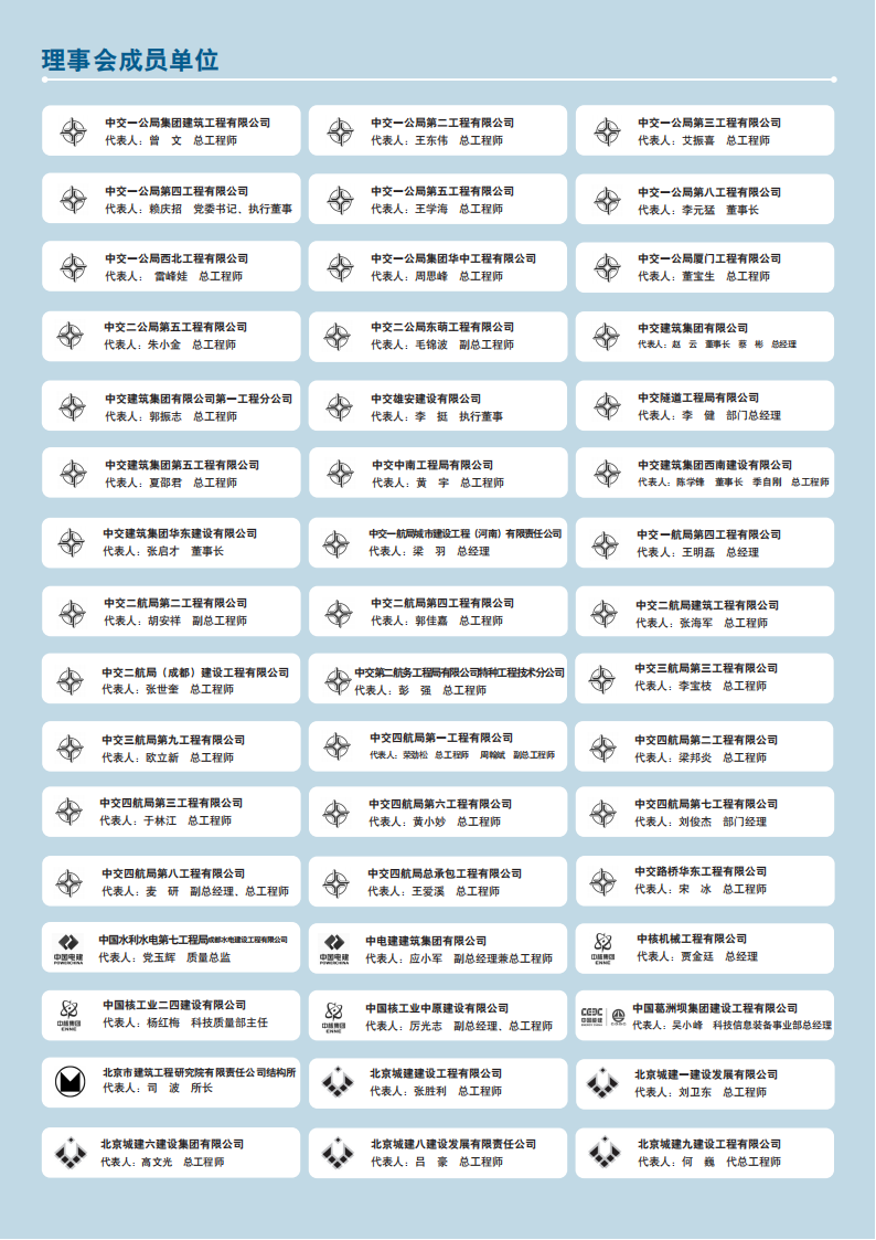 《施工技术(中英文)》理事会《施工技术(中英文)》理事会成立于 2005年5月,旨在汇集业内有识之士的智慧,在共同办好杂志的同时,为理事单位提供真诚有效的支持与服务。理事会成立以来,已吸收了400余家施工总承包特级(一级)企业,高等院校,科研、生产、设计、施工企业加入,理事单位与杂志社真诚合作,互利互惠,相得益彰。《施工技术(中英文)》理事会是一个交流、沟通、共享、互助的平台,为了进一步壮大理事会的队伍,不断增加新鲜血液,更好地促进交流与合作,推动我国建筑业技术进步,现诚邀业内优秀企业加盟《施工技术(中英文)》理事会,为繁荣我国的建筑业献智出力!